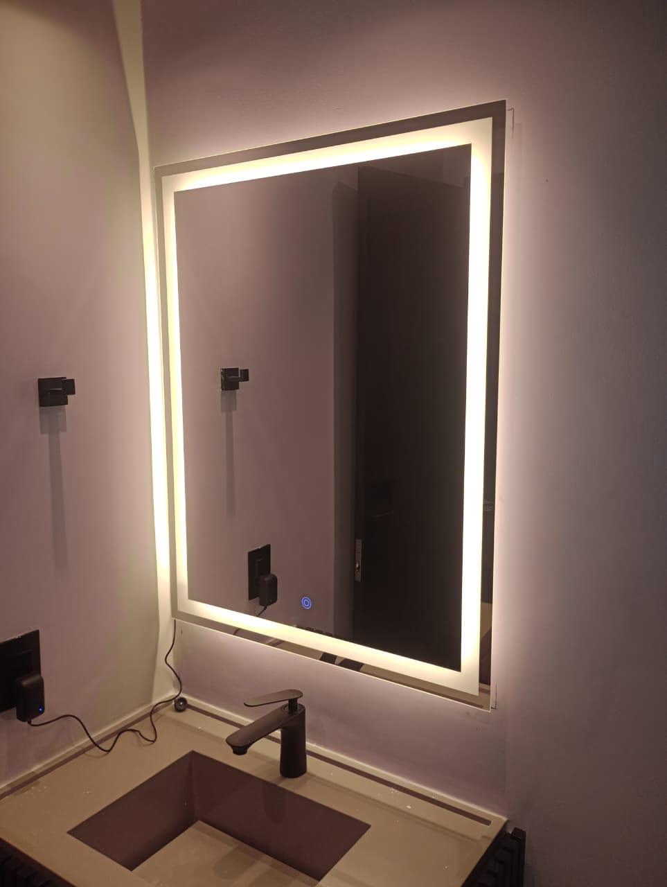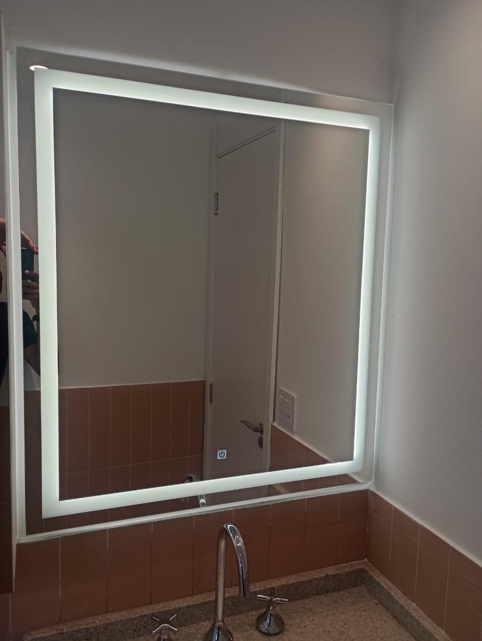 O Espelho Jateado com LED combina design contemporâneo com tecnologia de iluminação embutida, criando um efeito elegante e acolhedor no ambiente. O acabamento jateado distribui a luz de forma suave e uniforme, trazendo mais conforto visual, destaque estético e sofisticação ao espaço.