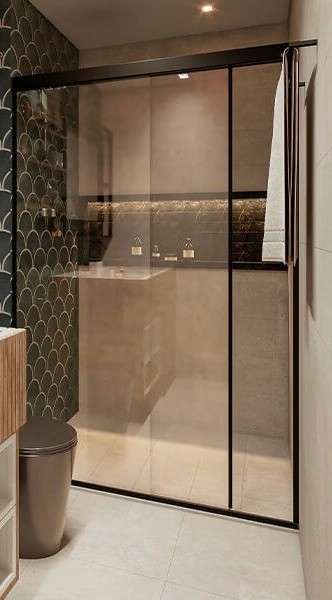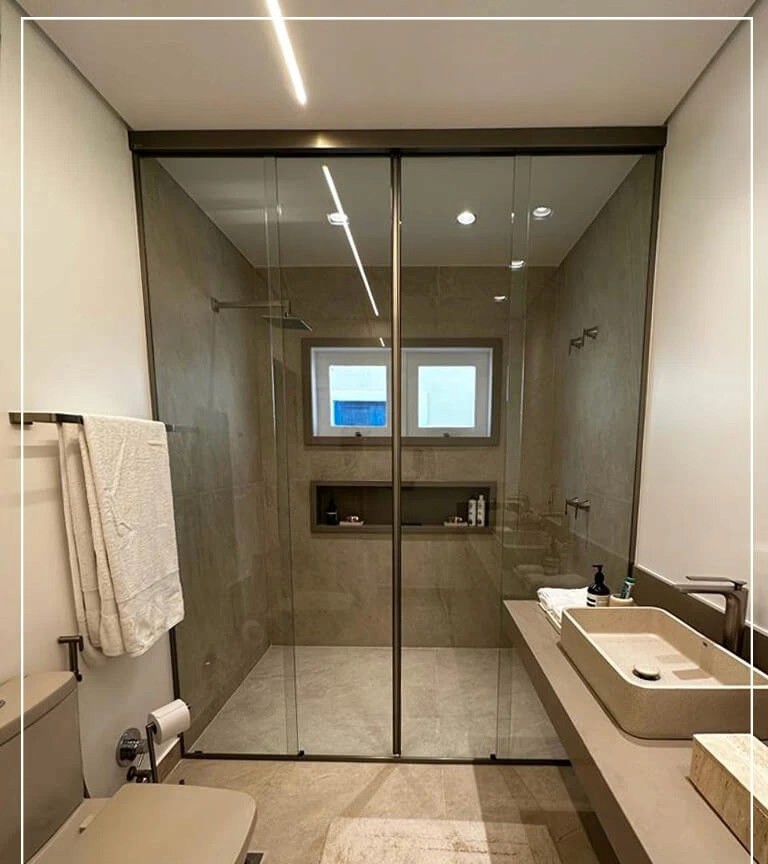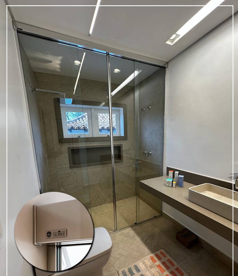 O Box Nobre combina linhas minimalistas com acabamento impecável, criando um visual leve e elegante. Produzido sob medida, oferece deslizamento suave, excelente vedação e integração harmoniosa com o projeto do banheiro. Uma escolha ideal para quem busca funcionalidade com alto padrão estético.